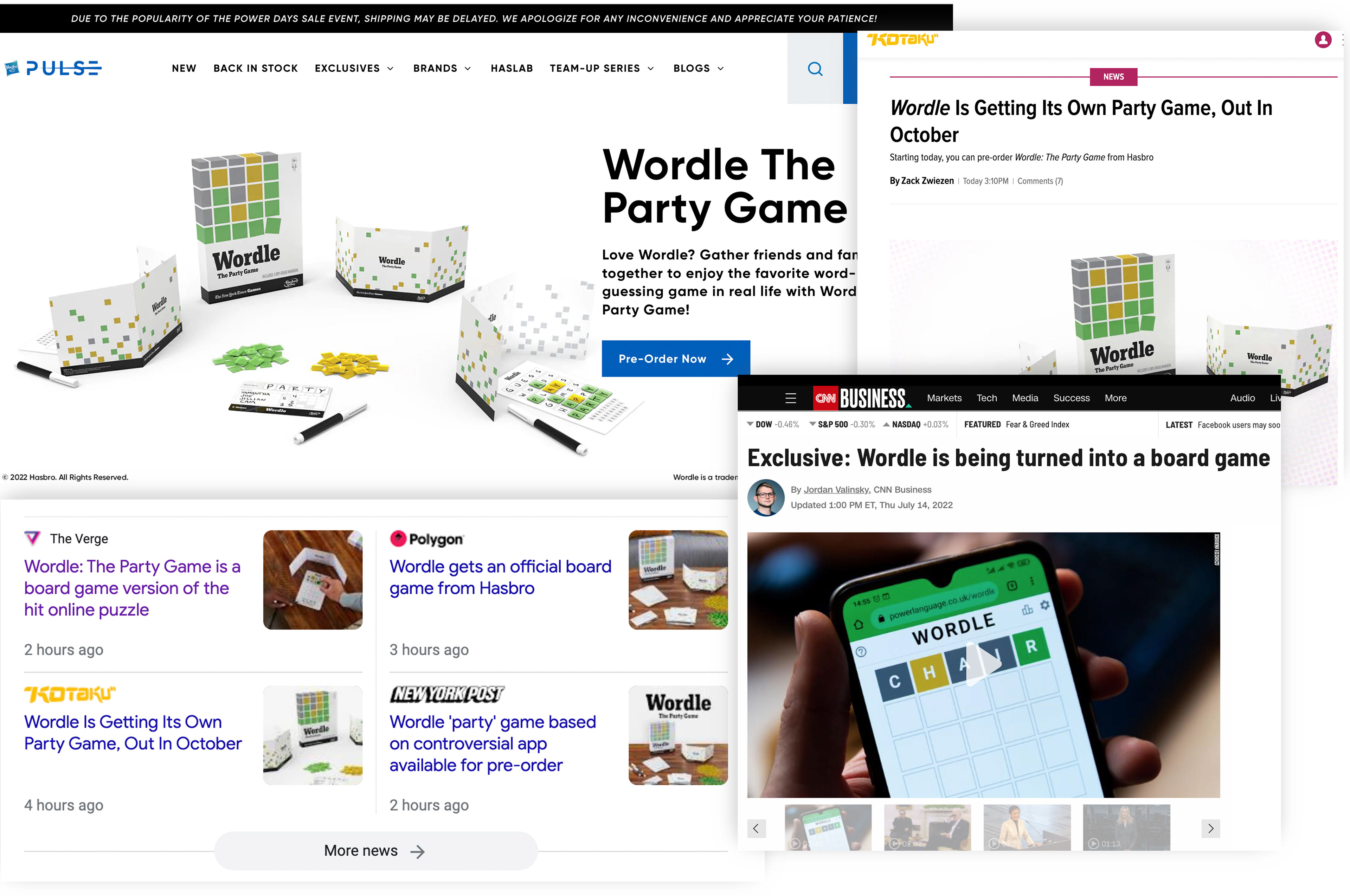 Hasbro is partnering with the New York Times, which owns the popular online word puzzle, to create "Wordle: The Party Game." The new board game "delivers classic Wordle gameplay, but now in an all-new way! Wordle: The Party Game" is one of Hasbro's fastest launches, as it took the team less than a year to create it.